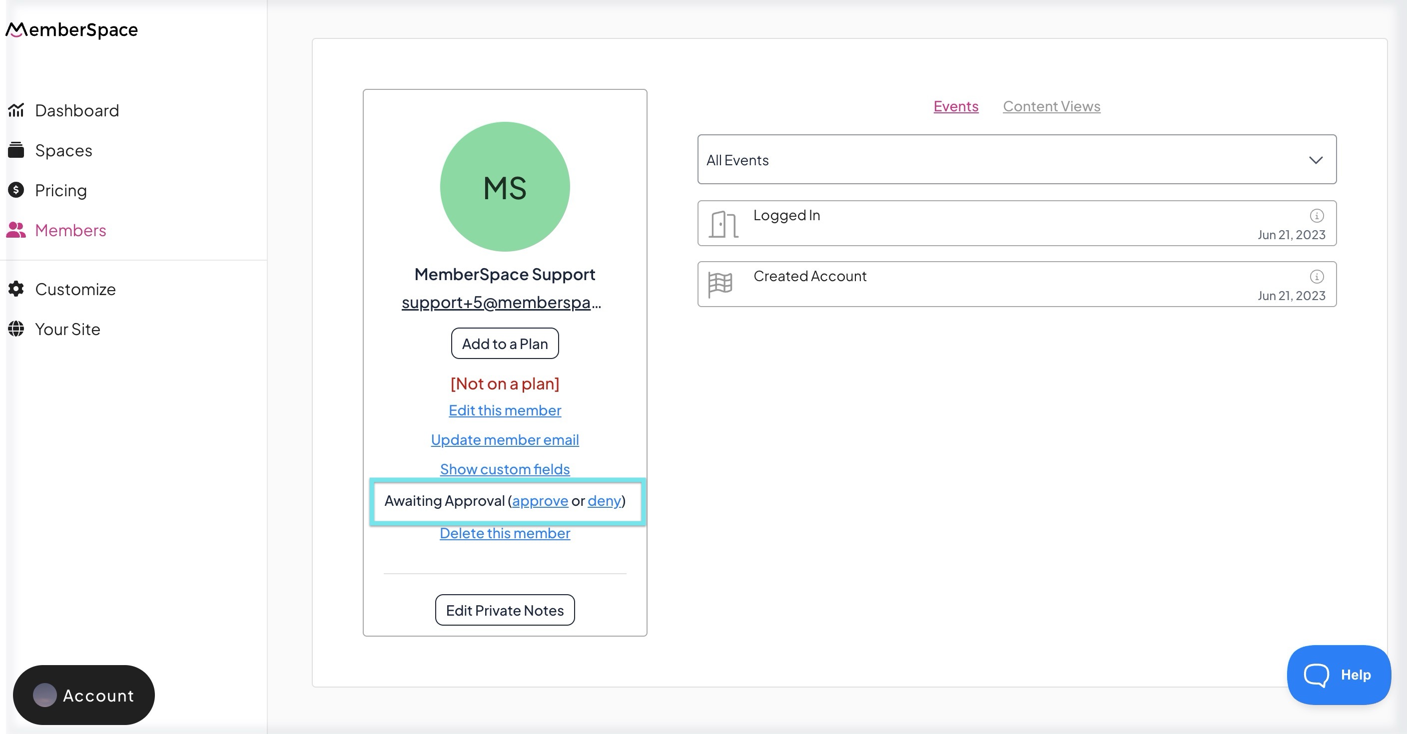 Some organizations prefer to manually review and approve each new member before granting access to their plans and protected content. MemberSpace makes this easy to manage.
