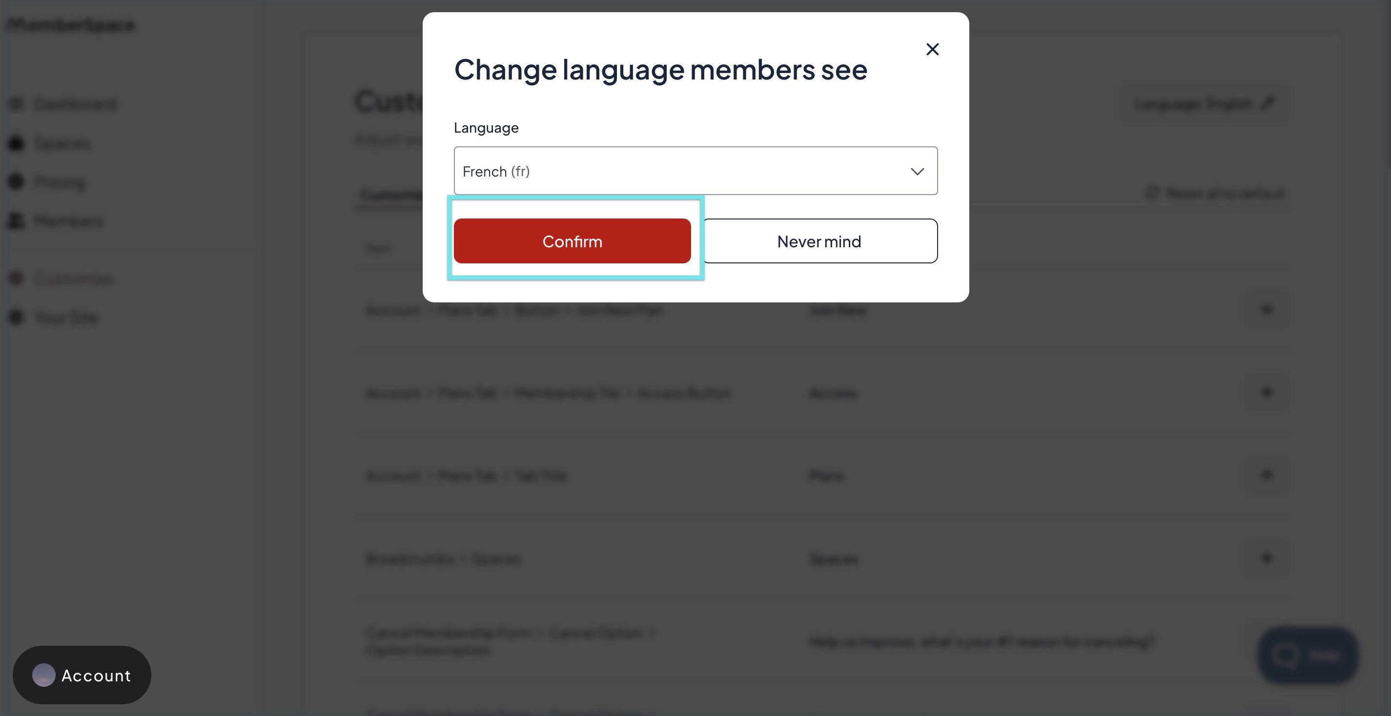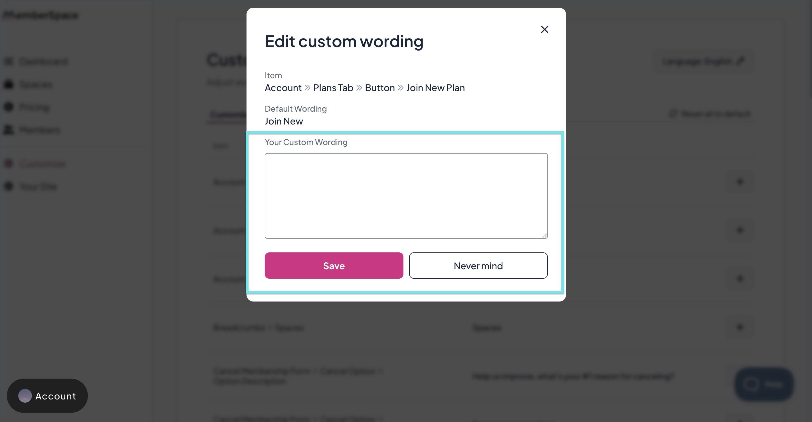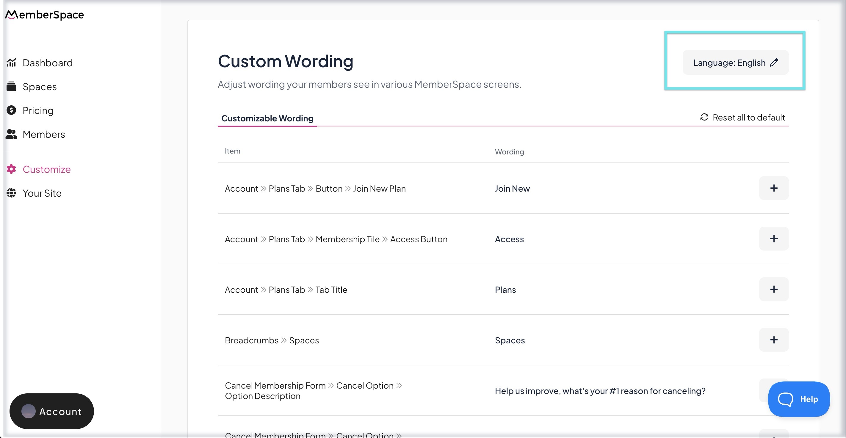 - In MemberSpace, click Customize in the left navigation > Custom Wording