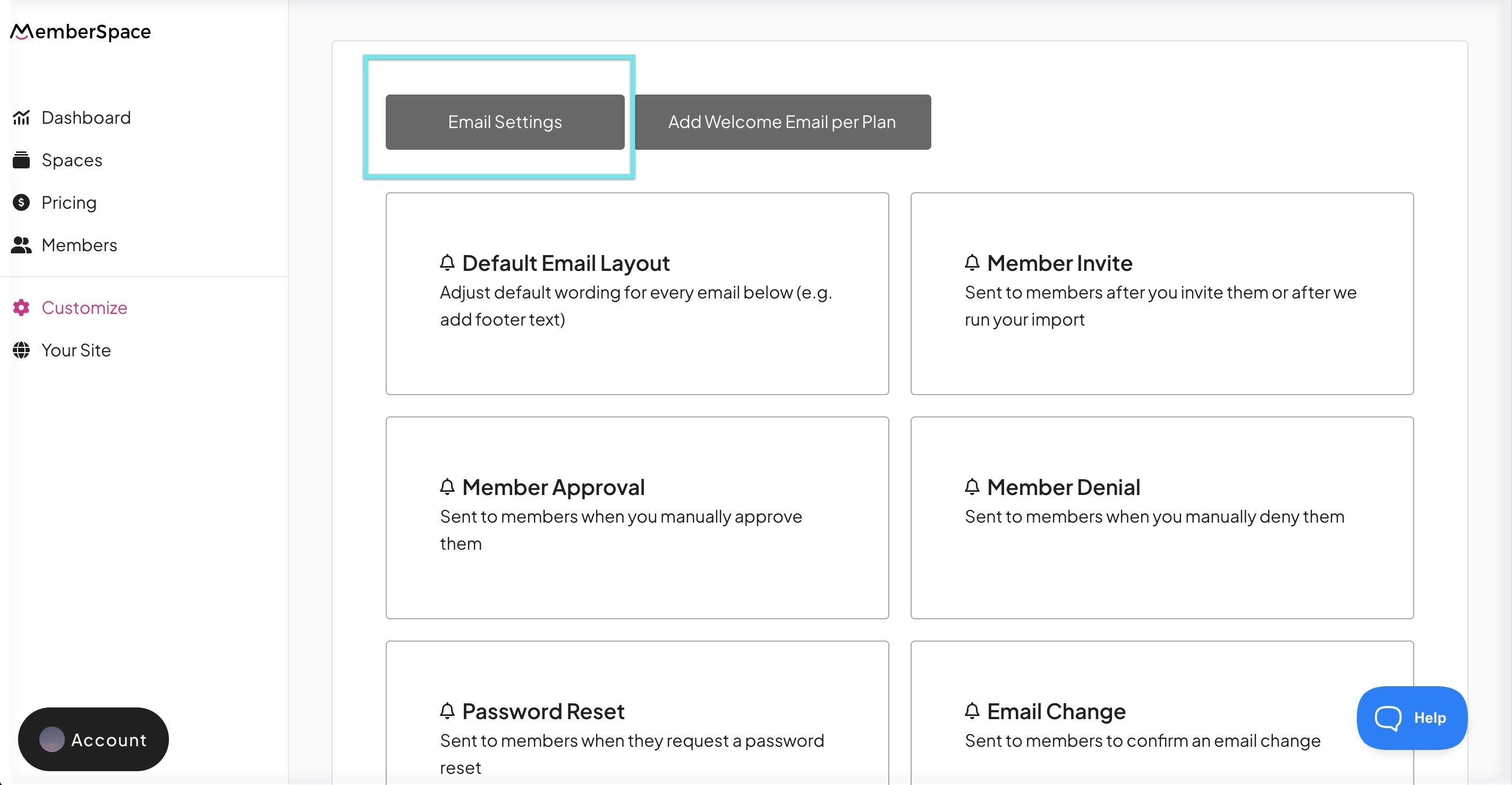 Here, you’ll see a full list of the account-triggered emails that MemberSpace sends out.