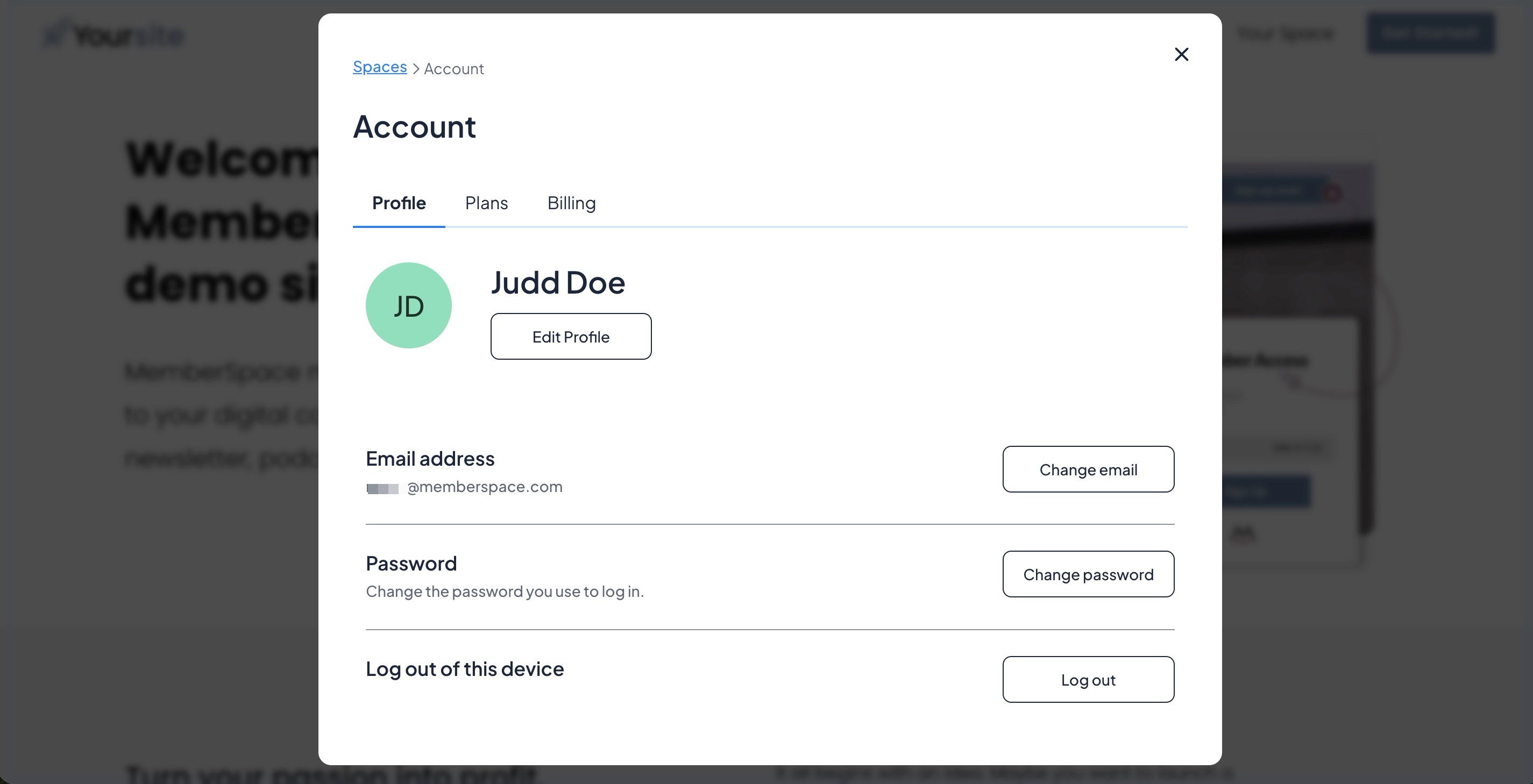 Once members are logged in the button will provide members access to their account area where they can access their Profile, Plans, and Billing.