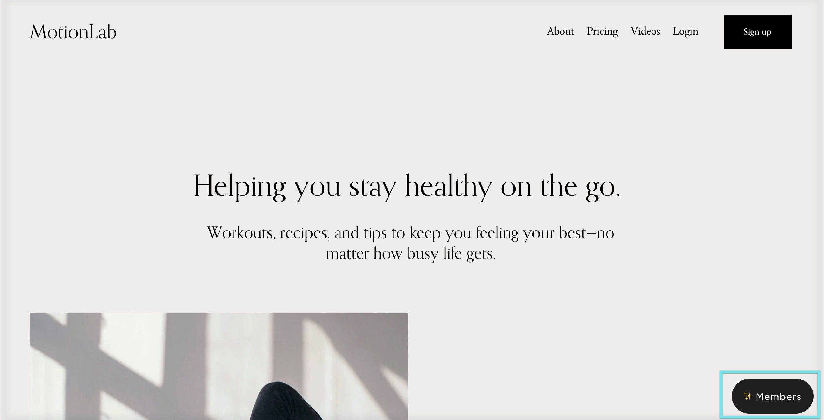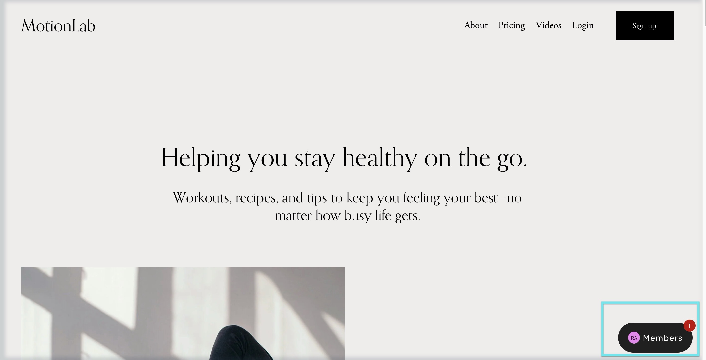 After installing MemberSpace on your website, a button will appear on all pages of your website, providing members access to sign up, log in, view their content, notifications, and access their account.